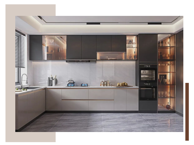 自帶高級的森綠與柔光烤漆相互碰撞,搭配安卡拉白大理石紋,創造輕盈感的同時提高了整潔度,讓人仿佛置身于大自然中,舒心、平靜。