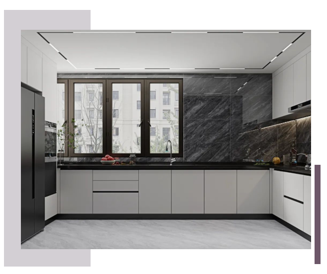 與生俱來的高貴版面與雅致氣質,黑金玉紋理設計,如同浩瀚海洋的大氣磅礴,搭配白色系的家居,讓沉穩寧靜的環境瞬間靈動起來,打造出美得超乎想象的廚房空間。