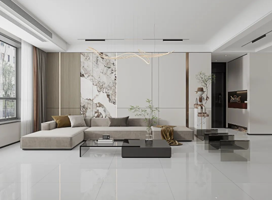 在定義至美情境同時,亦讓每一個閑暇時光,皆得到溫潤舒緩的空間善待。圖盧茲細膩的通體質感宛如純粹自然的玉石肌質,逼真的紋理,似行云流水般無限蔓延,搭配奶油風的簡約軟飾,為空間增添了靈動之美。