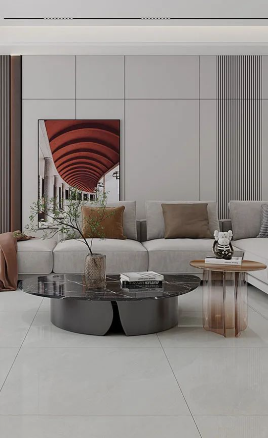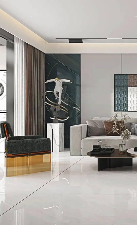 大理石紋理的亮面冰島灰,獨具匠心的連紋設計和真石紋理,既提升了客廳的視覺延伸感,750X1500mm的黃金規格比例更是打造出舒適雅致的空間層次感,喚醒家人內心深處的依戀與歸屬感。